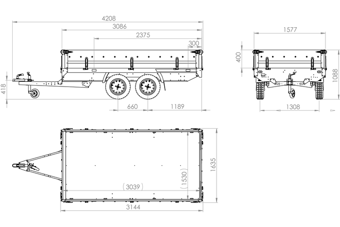 Découvrez la remorque 2 essieux UNITRAILER SOLID 300/2, une solution robuste et pratique pour vos besoins de déménagement et de transport de marchandises. Dotée d’un PTAC jusqu’à 750 kg, cette remorque offre une polyvalence exceptionnelle grâce à la possibilité d’ouvrir ou de démonter toutes les ridelles, facilitant ainsi le chargement et le déchargement.